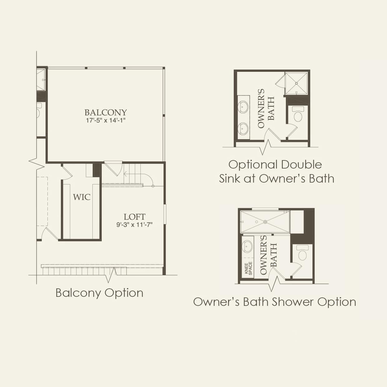 - Elevated comfort height vanities at owner’s and secondary bathrooms
